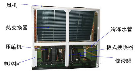 1、是以空气为冷(热)源,以水为供冷(热)介质的 中央空调机组,即冷凝器为翅片式换热器,蒸发器为水氟换热应用的换热器,如套管、壳管及板式换热器等。
