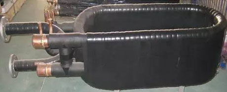 套管式换热器:制冷剂在换热管内强制对流沸腾并冷却管壁,循环水在管束外强制对流并加热管壁,两种介质通过换热管壁传热。