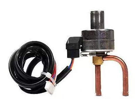 四通换向阀是一种两进两出的特殊电磁阀,用于压缩式热泵系统供暖与制冷工况转换。当热泵从制冷工况转为供暖工况时,四通换向阀动作(转到供暖工况位置),于是室内蒸发器作为冷凝器用,压缩机排出的高温制冷剂蒸汽经四通流入室内蒸发器(此时作冷凝器用),而冷凝器则成为蒸发器,完成工况转换。